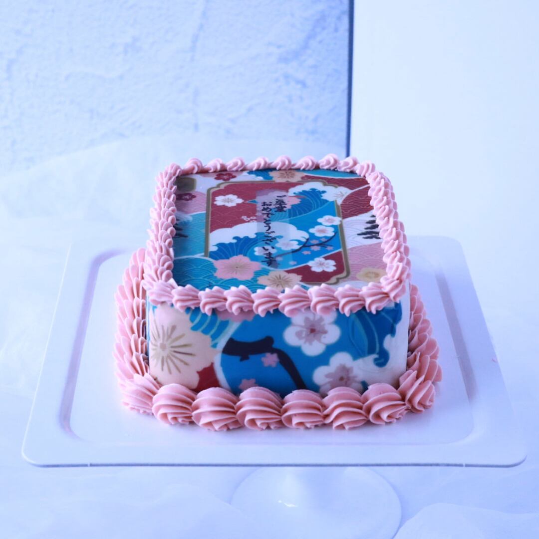 美しい昭和レトロの桜をモチーフにしたスクエア型ケーキです